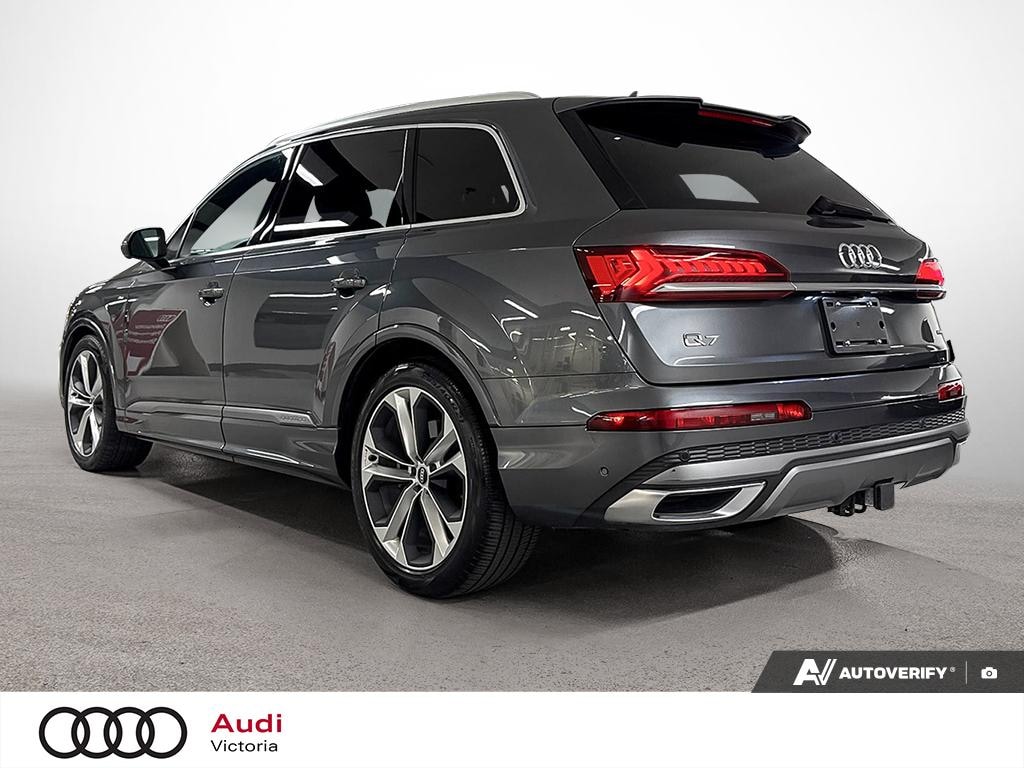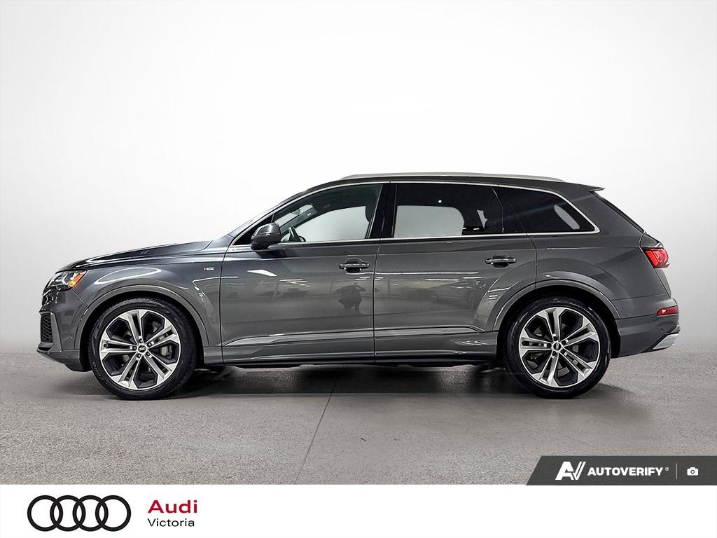 This Certified Pre-Owned 2021 Audi Q7 55 3.0T Progressiv quattro is a no-accident, BC local SUV that combines luxury, power, and advanced technology. Equipped with the Driver Assistance Package, Dynamic Ride Package, 21" Wheel Package, and a BOSE Premium 3D Sound System, it delivers an exceptional driving experience with enhanced comfort, safety, and style. With Audi’s legendary quattro all-wheel drive and a smooth 8-speed Tiptronic transmission, this Q7 is ready to impress on every journey. Key Features Include: 8-Speed Tiptronic transmission, V6 Cylinders, All wheel drive, Audi drive select, Audi connect security and assistance, Audi connect navigation and infotainment services, Audi smartphone interface, Audi virtual cockpit plus, Panoramic sunroof w/ electric sunshade, Electric power steering, 3-Zone climate control, Rear view camera, Front & rear parking sensors, Audi advanced key, Power front seats with driver memory, Heated front seats, LED headlights, LED daytime running lights, Audi side assist, Audi pre-sense, Audi lane departure warning, Active cruise control, Alarm system with interior motion sensor, and much more! *While every reasonable effort is made to ensure the accuracy of this information, we are not responsible for any errors or omissions contained on these pages. Please ensure your due diligence to confirm any features that are material to your purchase. Please note that the advertised price does not include the $595 Registration Fee *Our team of knowledgeable professionals will make certain that you are fully comfortable with all aspects of your ‘new’ pre-owned vehicle and our dealership. We offer competitive financing and trade-in values. Our certified technicians complete comprehensive vehicle inspections with thorough reconditioning and detailing. All of our pre-owned vehicles come with a CarFax BC Verified Vehicle History Report which offers details on prior ownership and accident history. Visit us today at Audi Victoria on 2929 Douglas Street. Victoria BC, or take a look on our website for more great deals at www.audivictoria.com.