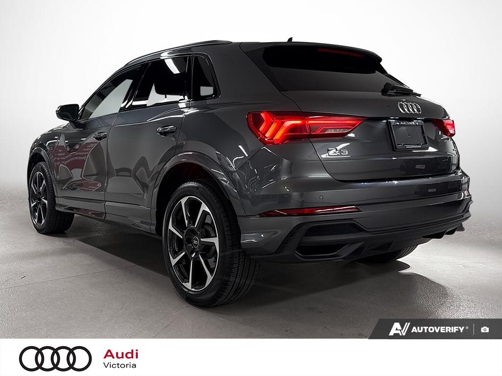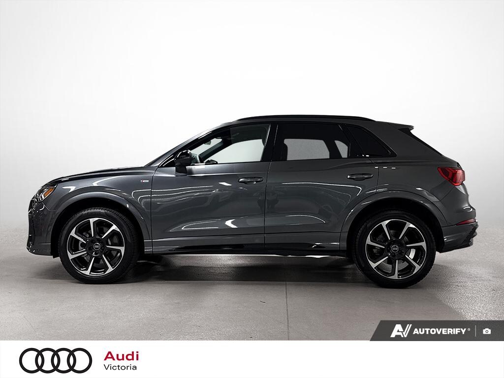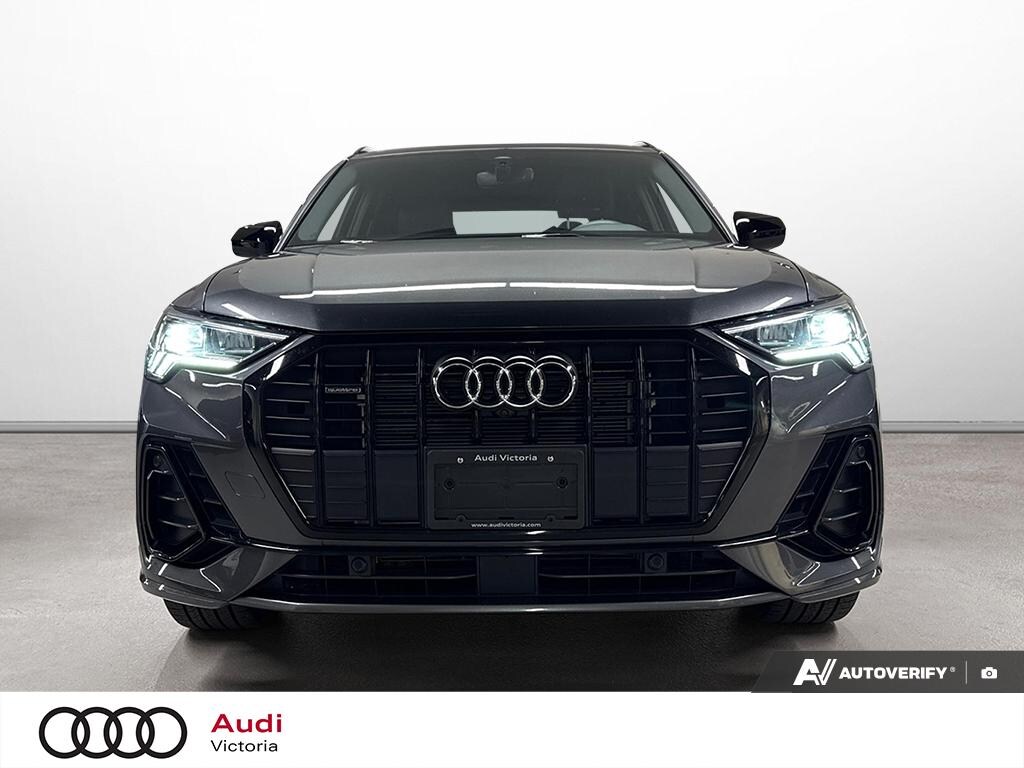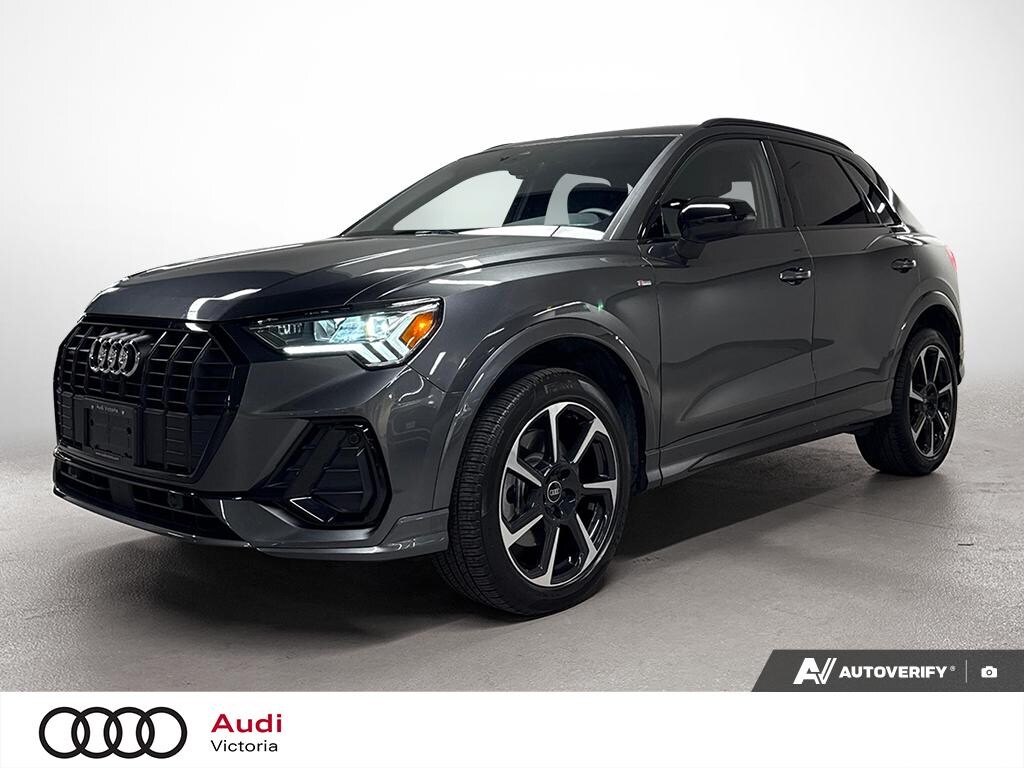 This Certified Pre-Owned 2024 Audi Q3 Technik 45 TFSI quattro is a no-accident, one-owner, BC local vehicle that delivers bold style and advanced performance. Featuring the sleek Black Optics Package, this premium compact SUV stands out with its sporty design and refined details. With Audi’s quattro all-wheel drive and a full suite of high-end features, it’s the perfect blend of versatility, luxury, and confidence on the road. Key Features Include: Audi drive select, 8-Speed triptronic, S-Line sport package (19’ wheels in 7-spoke rotor design, matte brushed aluminum dark inlays, stainless steel pedals), Black optics package (high gloss black grille and window trim, black mirrors, black roof rails), Rain and light sensor, Advanced LED headlights, Audi smartphone interface, Heated front seats, Heated steering wheel, Power tailgate, Anti-theft alarm system with interior motion sensor, Heated, auto dimming and power folding exterior mirror with memory, LED daytime running lights, Advanced key, Panoramic sunroof, Bluetooth and USB-C charging port, Rear USB port, Driver's seat with memory function, Audi connect security and assistance, Audi connect plus, MMI Navigation plus, 12.3" Audi virtual cockpit plus • 10.1" colour display including MMI touch, MMI Radio plus, Audi pre-sense basic, Cruise control, Tire pressure monitoring system, Rear view camera, Rear cross traffic alert, Traffic sign recognition, Audi side assist, Lane departure warning, Front and rear parking sensors, Wireless Apple Carplay, SONOS premium sound system with 3D sound, Topview Camera, and MUCH MORE!! *While every reasonable effort is made to ensure the accuracy of this information, we are not responsible for any errors or omissions contained on these pages. Please ensure your due diligence to confirm any features that are material to your purchase. Please note that the advertised price does not include the $595 Registration Fee* *Our team of knowledgeable professionals will make certain that you are fully comfortable with all aspects of your ‘new’ pre-owned vehicle and our dealership. We offer competitive financing and trade-in values. Our certified technicians complete comprehensive vehicle inspections with thorough reconditioning and detailing. All of our pre-owned vehicles come with a CarFax BC Verified Vehicle History Report which offers details on prior ownership and accident history. Visit us today at Audi Victoria on 2929 Douglas Street. Victoria BC, or take a look on our website for more great deals at www.audivictoria.com.